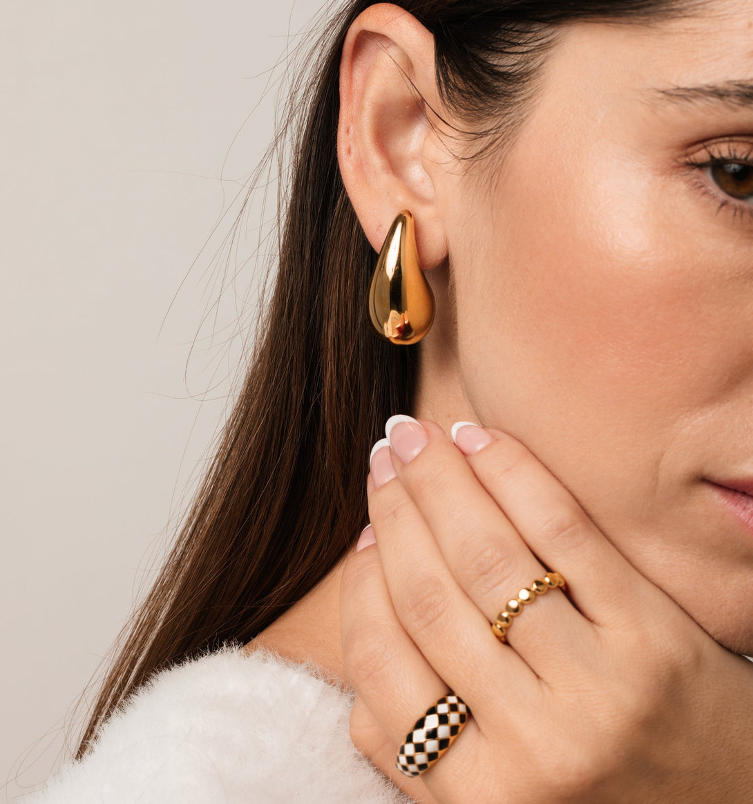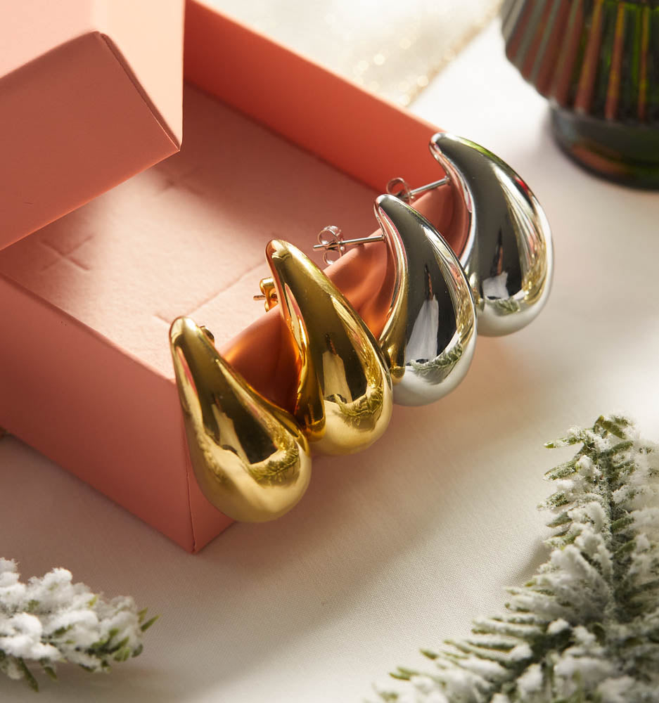 These are lightweight and waterproof! We love these statement droplet earrings for their the organic and playful shape. Style these oversized droplet earrings up for a fun night out or make them an essential part of your daily line up.