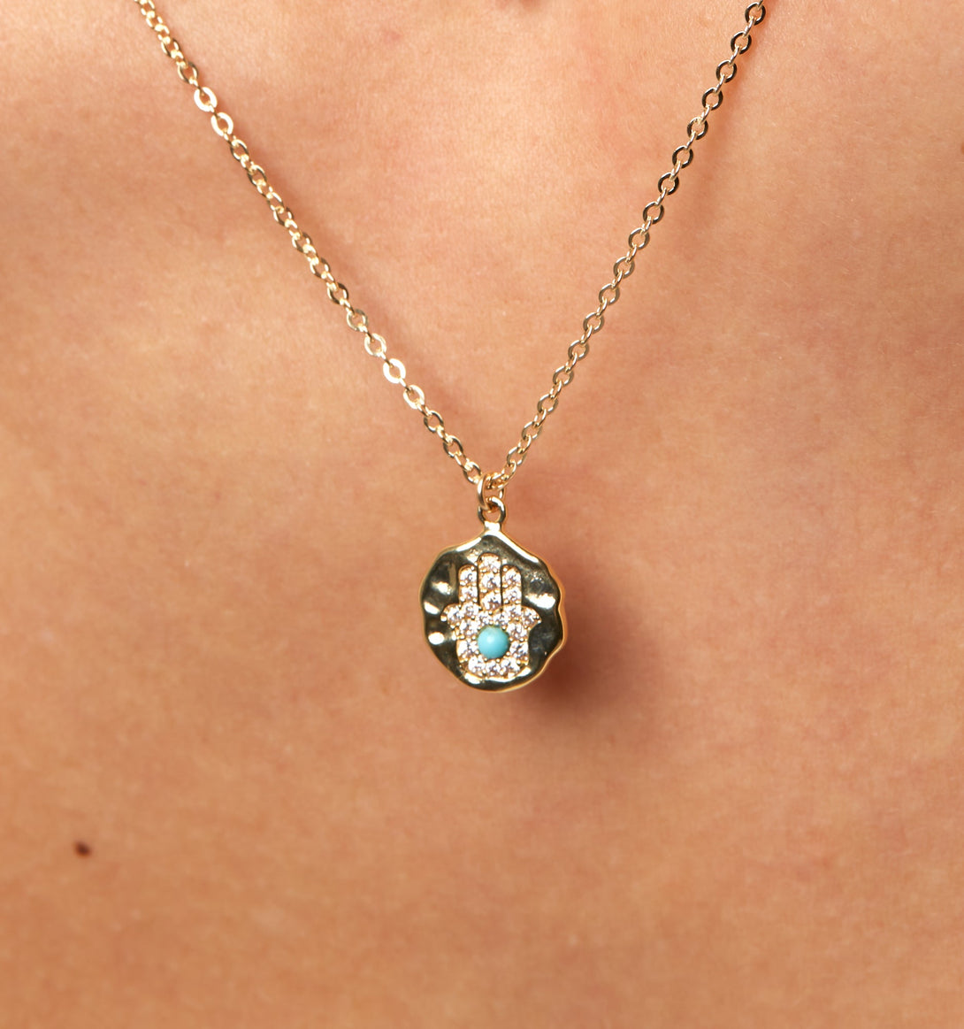 Our Hamsa symbol necklace is a powerful talisman to protect against evil and bring good fortune. This talisman has been around for centuries and is believed to protect against evil and bring good luck. The five fingers of the Hamsa hand represent the five elements, creating a symbol of balance and harmony that's perfect for anyone who values positivity and spirituality.