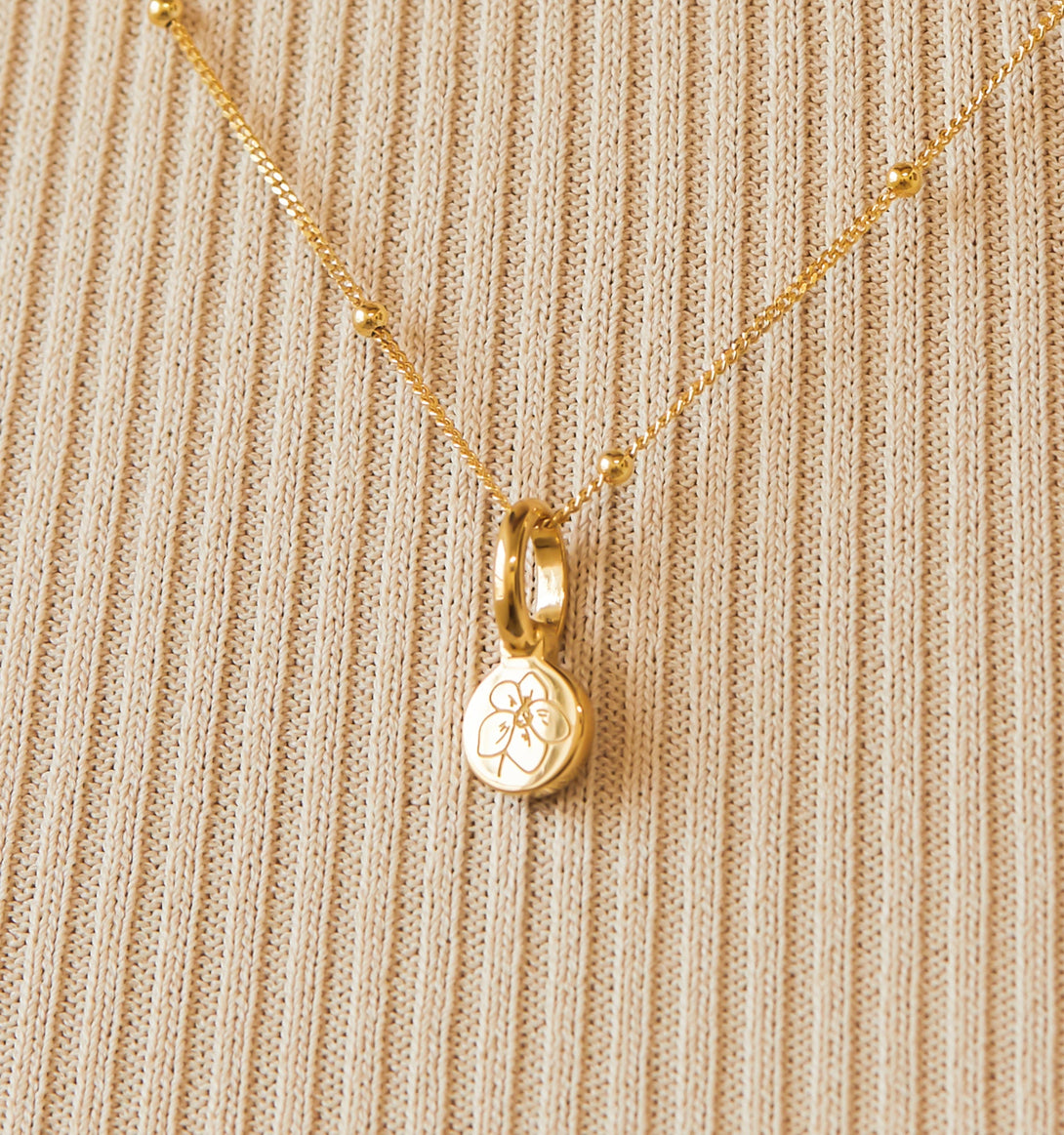 This Violet Flower necklace is the birth flower of February and represents modesty, faithfulness, and young love. Flower Fact: Violets typically have heart-shaped leaves.